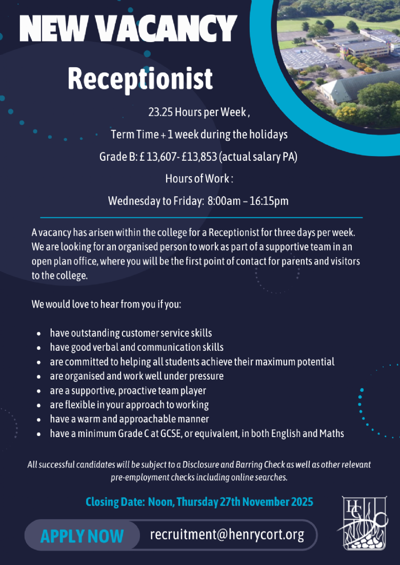 | For all recruitment enquiries please email recruitment@henrycort.org |